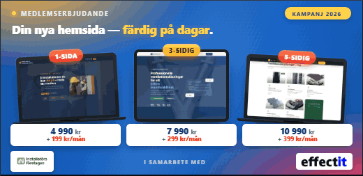 Som medlem i Installatörsföretagen finns nu möjlighet att ta del av en kampanj från Effectit med erbjudande på en professionell hemsida som kan vara klar på bara några dagar. Kampanjen gäller till och med 30 juni.